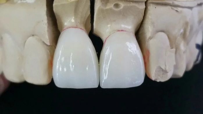 – Lớp phủ: Nhiều lớp sứ mỏng bên ngoài được đắp thủ công hoặc thổi màu để tạo ra độ bóng, vân răng và màu sắc trùng khớp với răng thật của từng khách hàng.